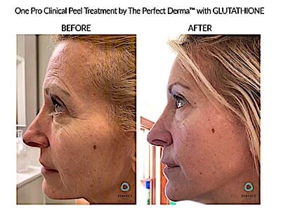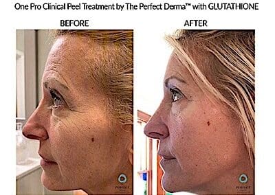 Unlike traditional peels that rely solely on surface exfoliation, The Perfect Derma Peel works deeply to reverse skin damage and slow the aging process. Its exclusive formula features glutathione — the body’s master antioxidant — combined with TCA, retinoic acid, kojic acid, phenol, salicylic acid, and vitamin C. This potent synergy not only brightens and smooths your skin but strengthens it from within, protecting against future damage.